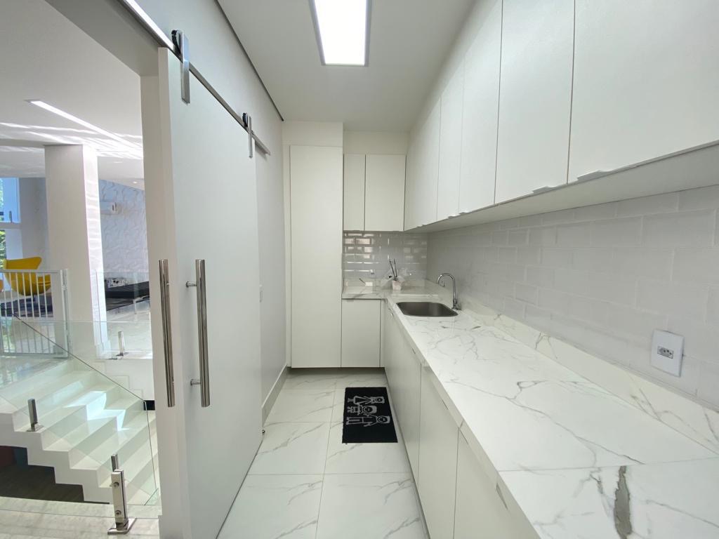 - Cozinha equipada com ilha em porcelanato e muitos armários