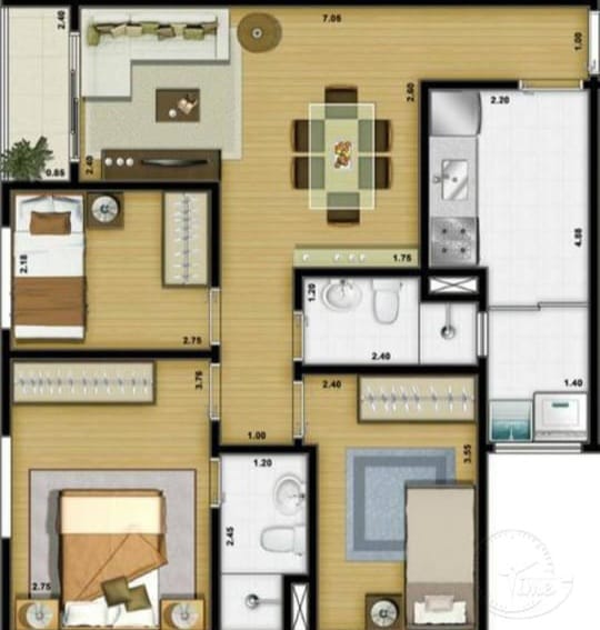 3 Dormitórios amplos e bem arejados sendo 1 Suíte, Sala ampla para dois ambientes, sacada com vista livre , Cozinha espaçosa, Lavanderia funcional.